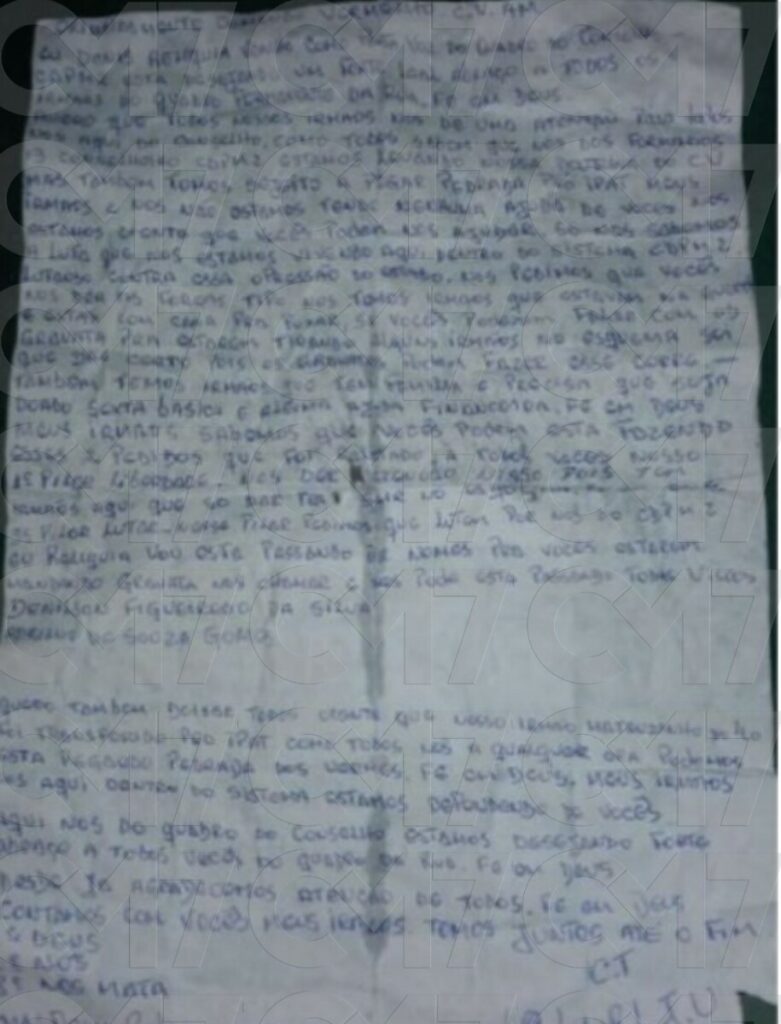 O CV acusa a aliança política de trairagem, mencionando a transferência de alguns membros para outra facção rival, o Primeiro Comando da Capital (PCC). A facção promete divulgar informações que expõem a corrupção na cúpula da segurança pública, afirmando ter “olhos em todos os lugares”.