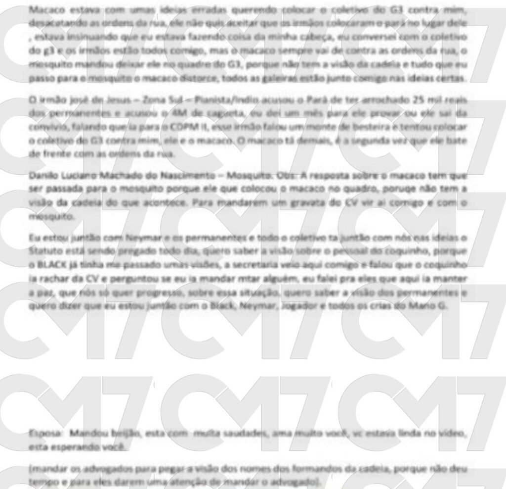 Além disso, ameaça revelar detalhes sobre o envolvimento de membros da maçonaria em acordos corruptos que favorecem o crime organizado e os próprios agentes corruptos. O comunicado revela que o CV possui informações privilegiadas sobre transações ilícitas, tráfico de drogas, transporte de ouro ilegal na região, além de bilhetes trocados pelos presos dentro do sistema prisional como provas.