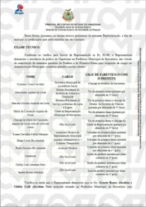 1) Cristiany Costa Carvalho – Esposa do Prefeito e Secretária de Assistência Social do Município, mesmo sem ter formação na área (capacidade técnica), contrariando da jurisprudência do STF.