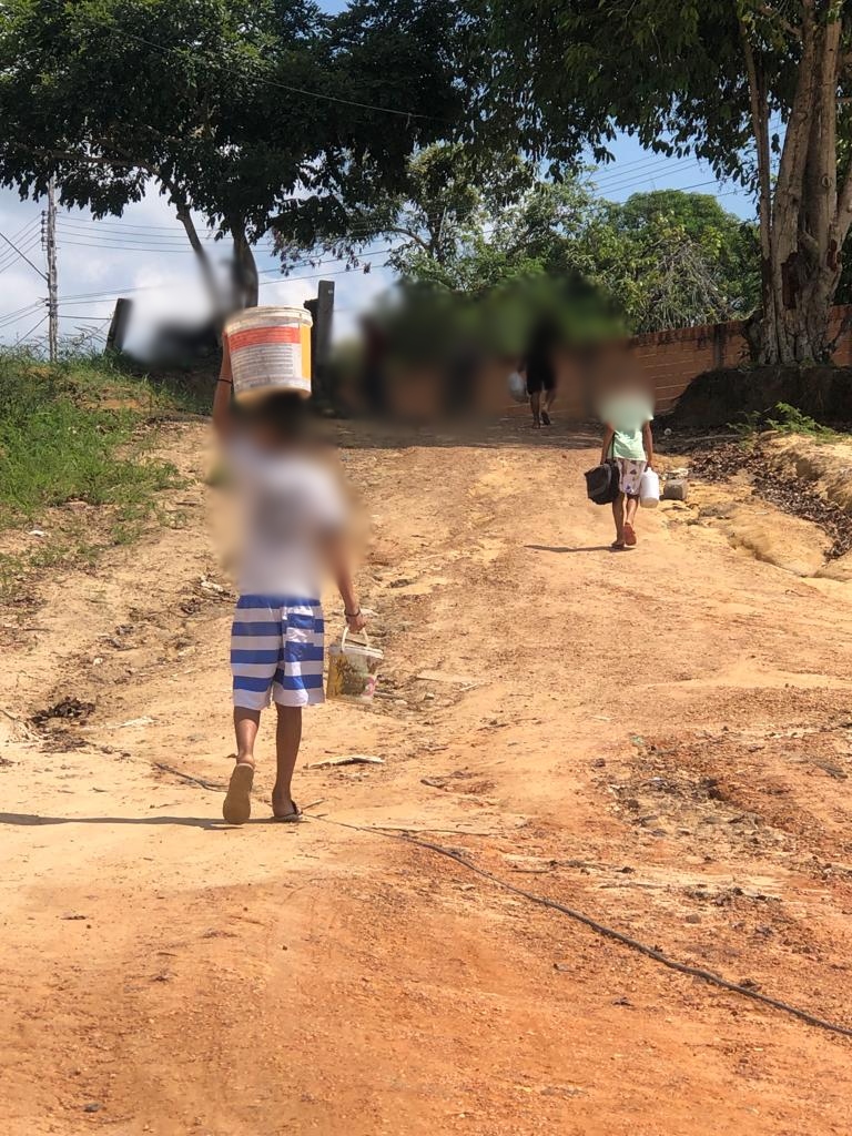 No epicentro desse drama, o Bairro da Paz se torna palco de uma tragédia esquecida. Crianças, cujas risadas deveriam preencher as ruas, agora evitam as escolas, pois não há água para a higiene mais básica: tomar banho, ter roupas limpas ou beber água limpa, algo que se tornou praticamente impossível. Sob um sol cruel, os pequenos caminham quilômetros, descalços e cansados, até o igarapé mais próximo e trazem apenas alguns litros de água com pesados baldes na cabeça.