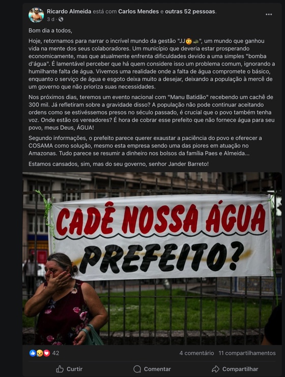 GRAVE: Povo sofre sem água enquanto Jander Barreto faz Show da Manu Bahtidão em São Sebastião do Uatumã