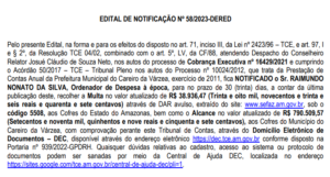 Raimundo Nonato tem um prazo de 30 dias para recolher o valor da multa, que totaliza R$ 38.936,47 (trinta e oito mil, novecentos e trinta e seis reais e quarenta e sete centavos).