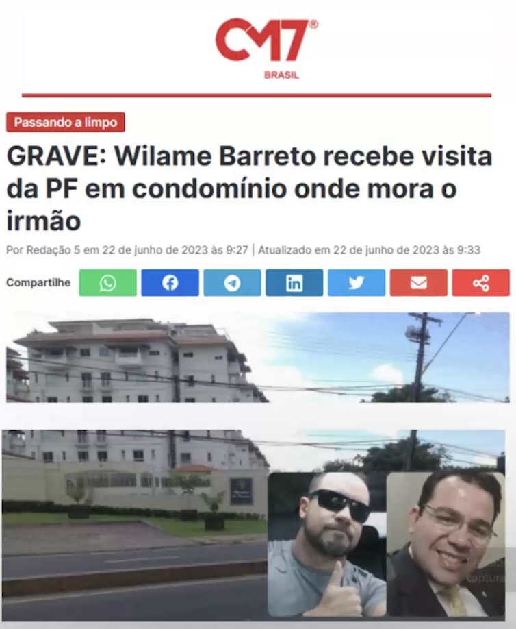 Na ocasião, Wilker relembra a operação realizada pela Polícia Federal na última sexta-feira (23) e expõe no telão uma manchete, supostamente noticiada pelo CM7 Brasil, onde aponta que seu irmão foi o alvo da investigação.