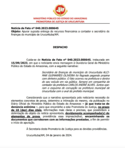 Amazonas – O Ministério Público do Amazonas (MPAM), anunciou uma investigação em relação a uma denúncia de suposta entrega de recursos financeiros a vereadores da cidade de Urucurituba. O prefeito, Sabugo, está no centro da polêmica, sendo acusado de realizar a entrega desses recursos.