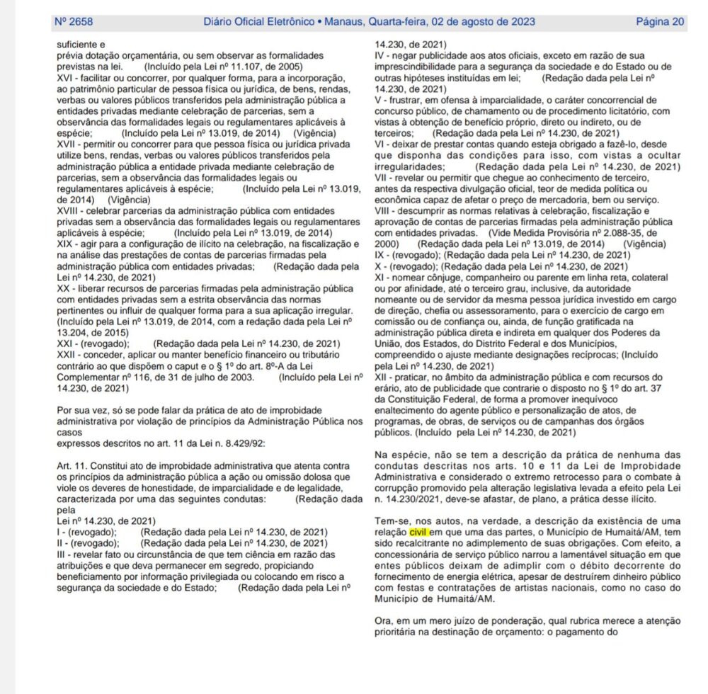 Segundo os registros do MPAM, a dívida teria se iniciado durante a gestão do ex-prefeito de Humaitá, Herivaneo Seixas (PSC), entre os anos de 2017 e 2020, e continuou sem pagamento durante a administração do atual prefeito, Dedei Lobo (PSC).