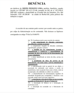 Em um processo judicial, o vice-prefeito pede a rescisão do contrato com a empresa Costaplan Construções Ltda, o afastamento do prefeito Simão Peixoto e a proibição da empresa de contratar com a prefeitura de Borba.