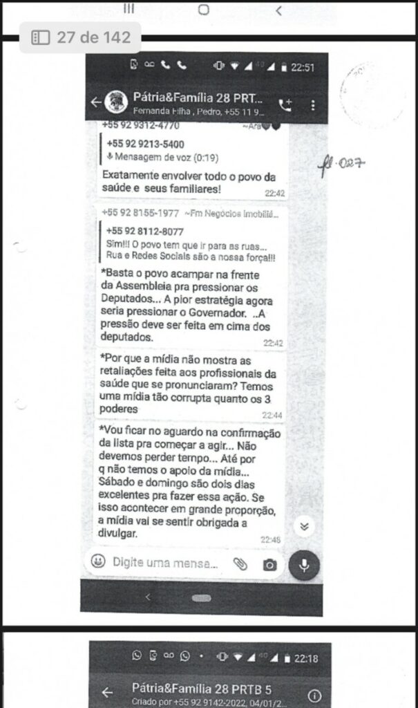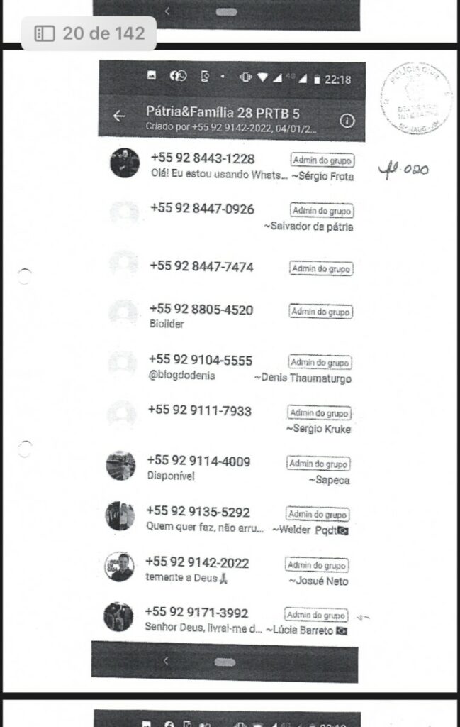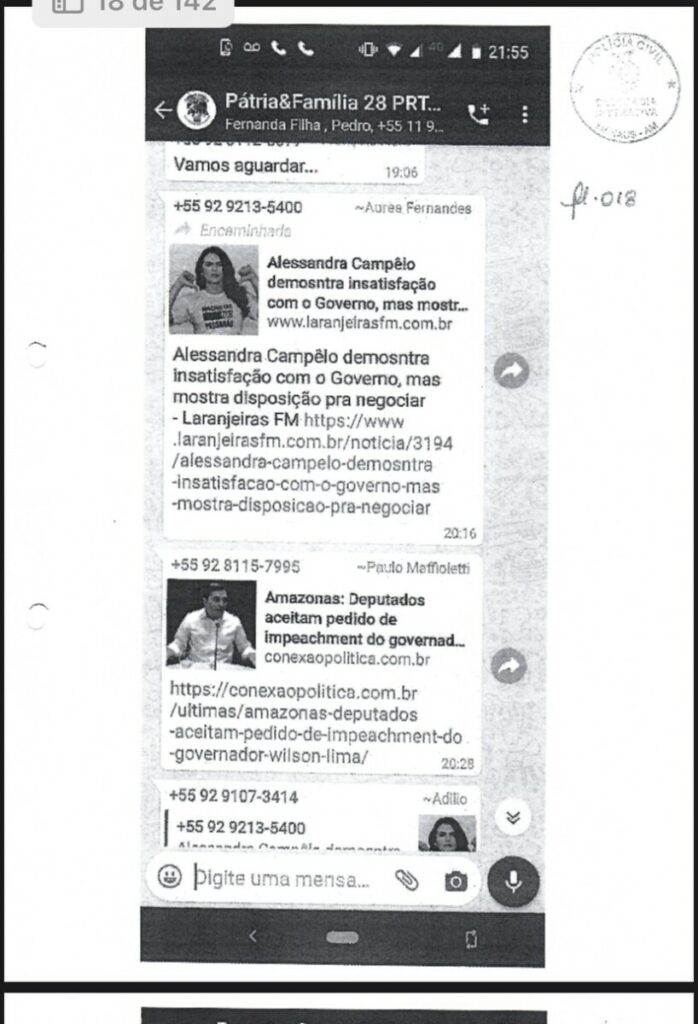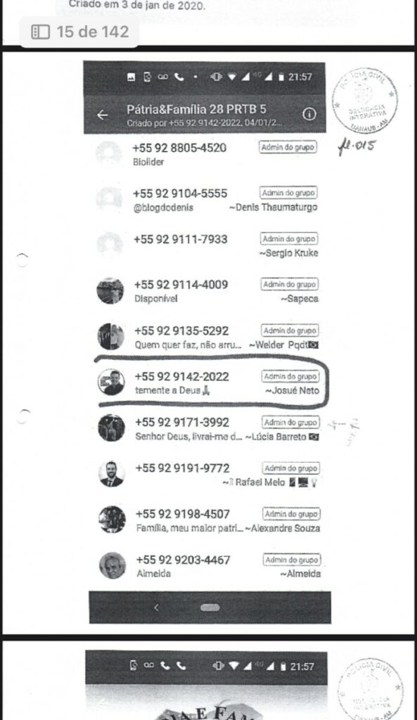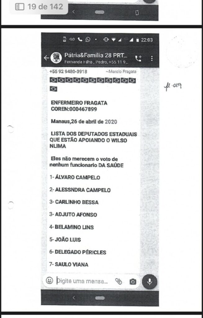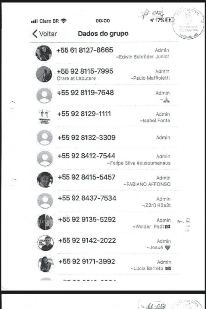 A deputada Alessandra afirmou que os nomes usados pelo número que está no CPF de Wilker Barreto, nos grupos de whatsapp de ofensas, são Jully e Pereca. Amigos Top 2020, Pátria&Família 28 PRTB 5 e Galeroso da Notícia 1 são alguns dos nomes dos grupos.