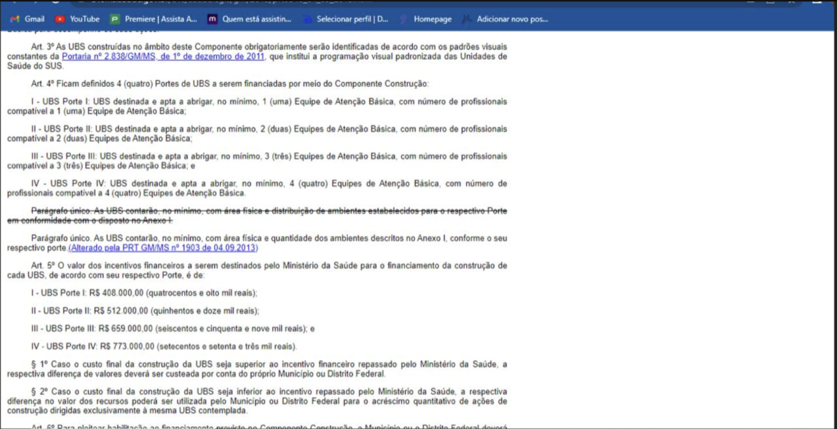 Esse é o valor que, de acordo com o Art 5º do Programa de Requalificação de Unidades Básicas de Saúde, da Secretaria de Atenção Primária à Saúde (SAPS), é destinado pelo Ministério da Saúde para o financiamento da construção da UBS Porte I.