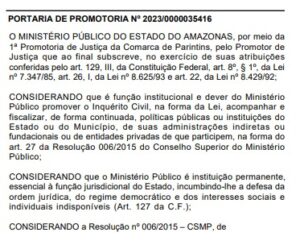 Amazonas – A Secretaria Municipal de Saúde de Parintins, cidade que é comandada pelo prefeito Bi Garcia, se tornou alvo do Ministério Público do Amazonas após denúncias referentes às condições de trabalho dos servidores. O documento de instauração de um Inquérito Civil foi publicado em 25 de abril.