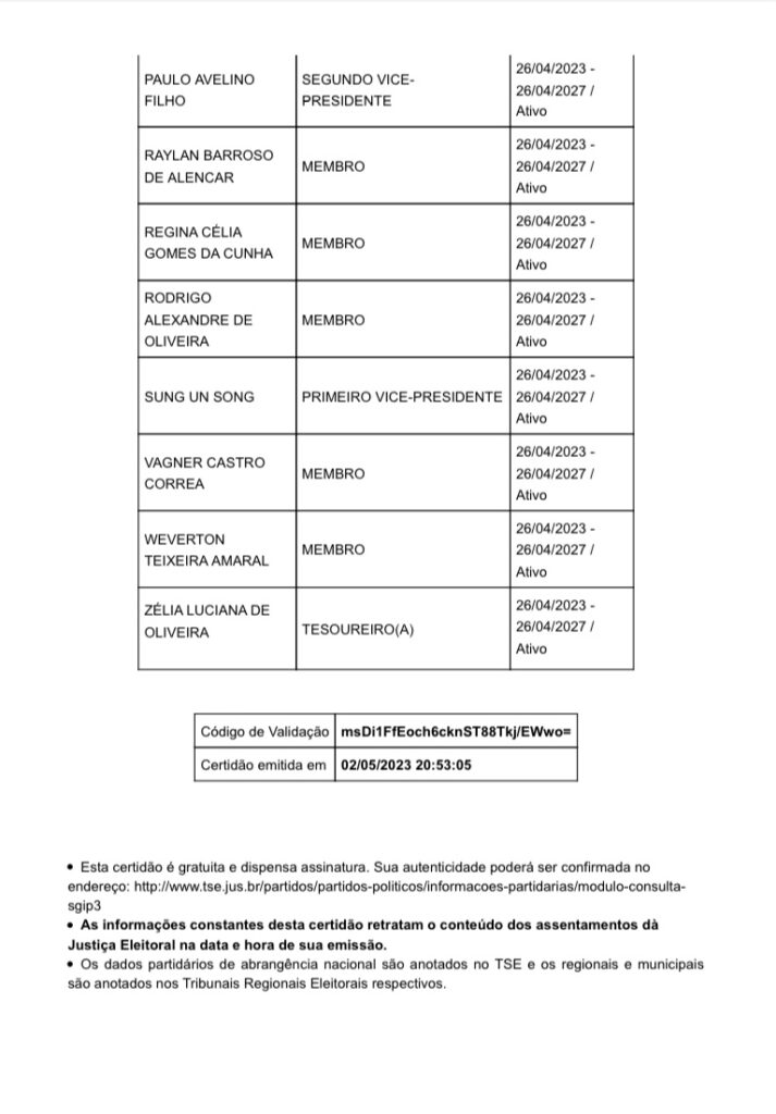 O documento da Justiça Eleitoral mostra a atribuição de novos cargos da Executiva Estadual do partido com pessoas ligadas diretamente ao secretário, sem representantes ou figuras próximas a qualquer outro membro da sigla.