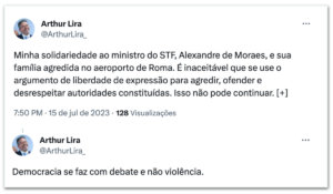 O presidente da Câmara dos Deputados, Arthur Lira, do Partido Progressistas (PP), também se pronunciou, destacando ser “inaceitável que se use o argumento da liberdade de expressão para agredir, ofender e desrespeitar autoridades constituídas”.