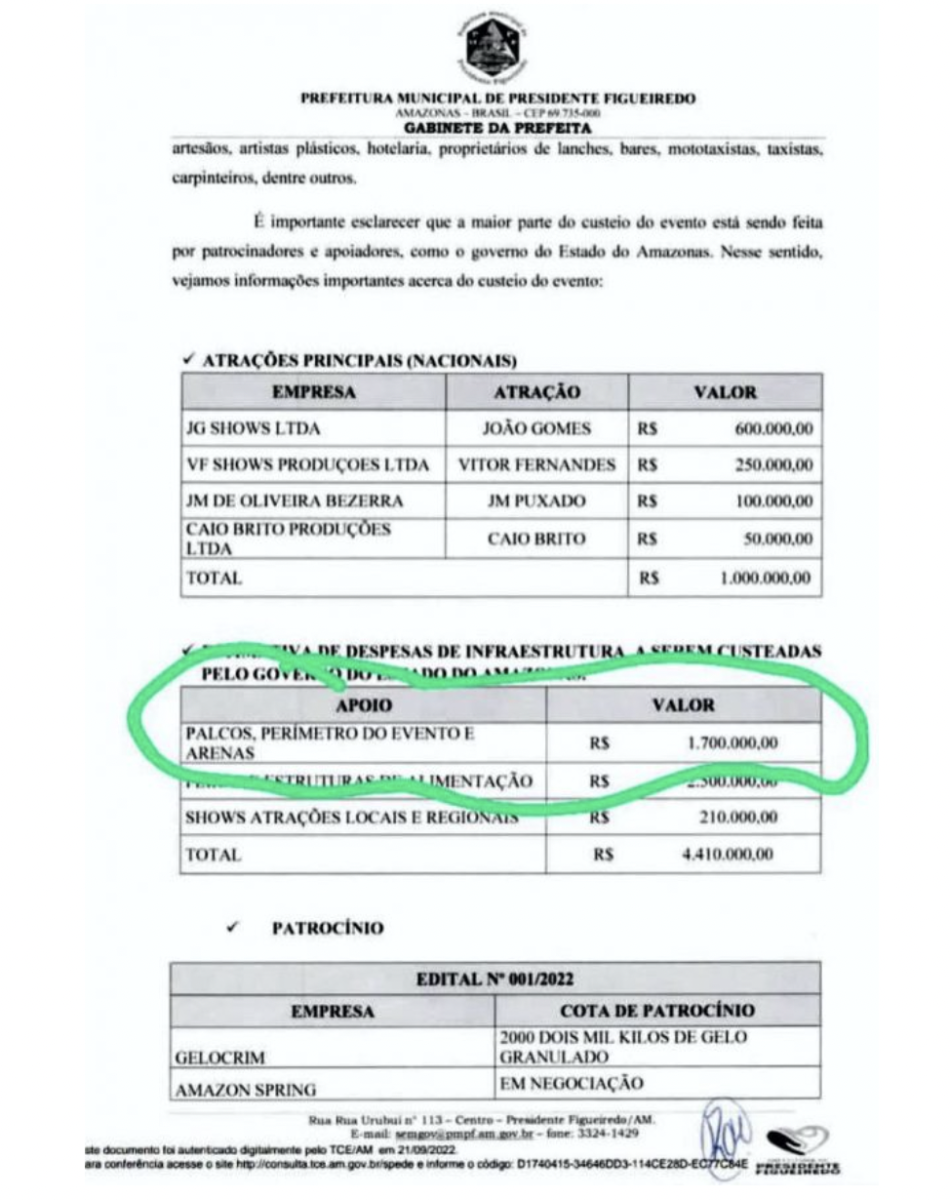 Amazonas – As despesas astronômicas da tradicional Festa do Cupuaçu realizada no município de Presidente Figueiredo, segue repercutindo negativamente entre os moradores da terra da cachoeira e pode ter consequências graves para a prefeita Patrícia Lopes (MDB-AM).