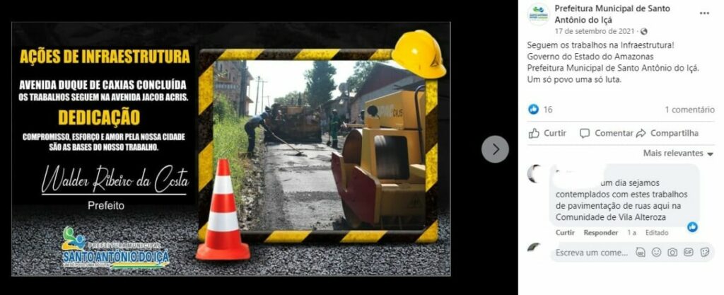 Amazonas – O prefeito Walder Ribeiro da Costa, mais conhecido como Ceceu (Republicanos) no município de Santo Antônio do Iça (distante 879 quilômetros de Manaus) firmou contrato de mais de 4,7 milhões para jogar asfalto em ruas que foram pavimentadas a pouco mais de um ano na cidade.