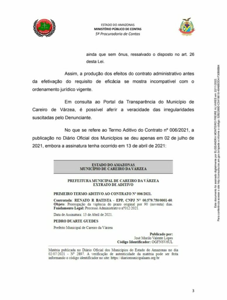 O Tribunal de Contas do Estado do Amazonas (TCE-AM) está de olho nas contratações que o prefeito de Careiro da Várzea , Pedro Guedes, tem feito. Desta vez, mais uma denúncia sobre a contratação de um empresa sem transparência foi realizada.