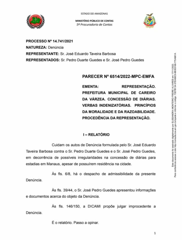 O TCE-AM acatou a denúncia contra os dois e já investiga mais um caso de corrupção envolvendo Pedro Guedes do Careiro da Várzea.