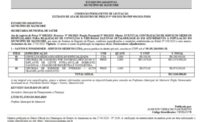 O valor global é de R$ 2.840.000,00, e a empresa vencedora do certame é a Santos e Possimoser – Serviços Médicos Ltda., cadastrada no CNPJ Nº 09.191.266/0001-33, localizada no Centro de Manaus.
