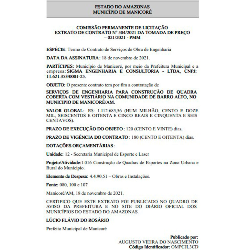 Amazonas – Muitas polêmicas sobre os gastos do dinheiro publico estão sendo alvos do Ministério Publico do Amazonas (MP-AM). Desta vez, o prefeito de Manicoré, Lúcio Flávio, vai gastar R$ 1.112.685,56 ( um milhão, cento e doze mil, seiscentos e oitenta e cinco reais e cinquenta e seis centavos) dos cofres do município para a construção de uma quadra.