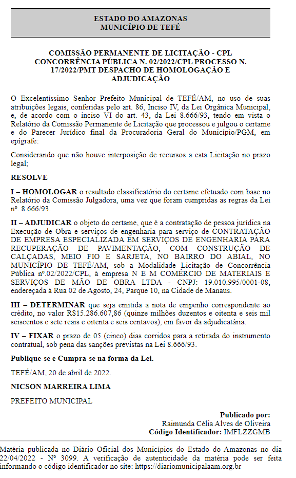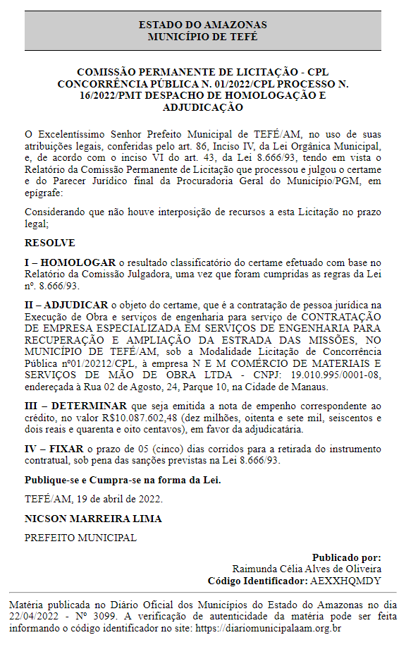 Além disso, o prefeito de Tefé, Nicson Marreira (União Brasil), está sendo “assombrado” após envolvimento em um esquema de obras fantasmas no município. O prefeito contratou a empresa N E M Comércio de Materiais e Serviços de Mão de Obra LTDA para pavimentação de ruas e um ramal pelo valor superior a R$ 25 milhões. A contratação, que levanta suspeitas, também coincidentemente envolveu a mesma empresa vencedora em dois certames milionários.