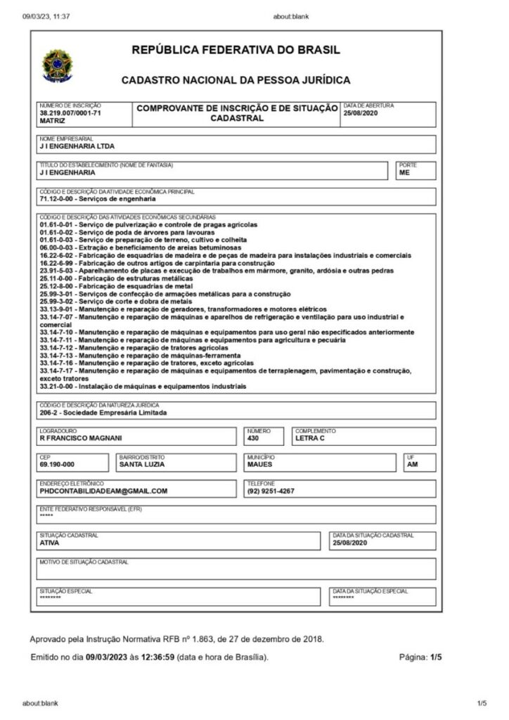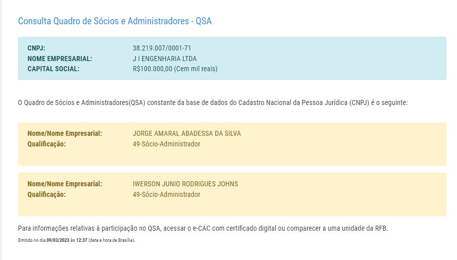 Ainda segundo a publicação, a empresa vencedora do certame tem como responsáveis legais Jorge Amaral Abadessa da Silva e Iwerson Junio Rodrigues Johns, e possui um capital social de R$ 100 mil.