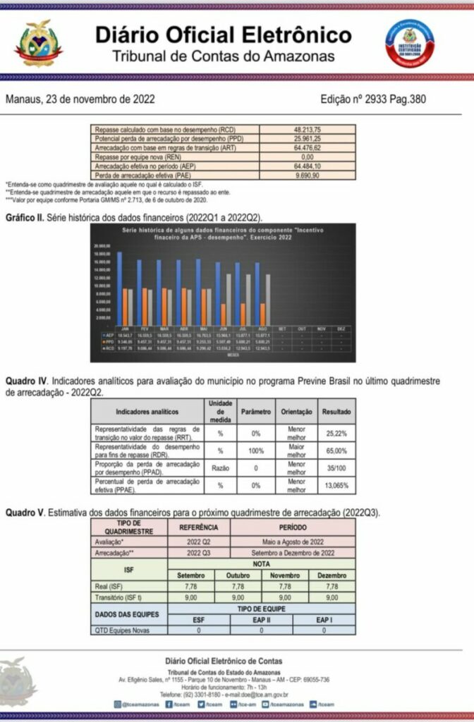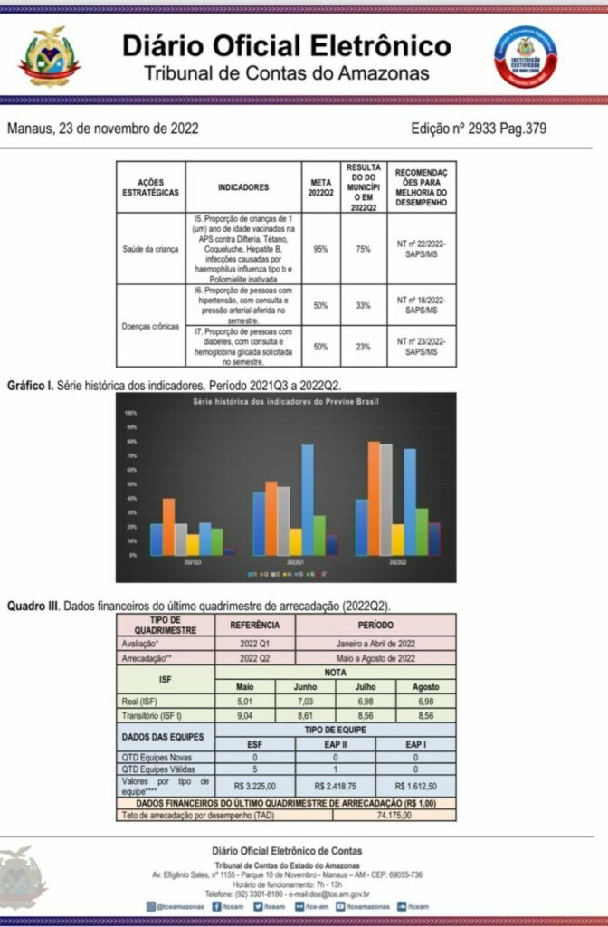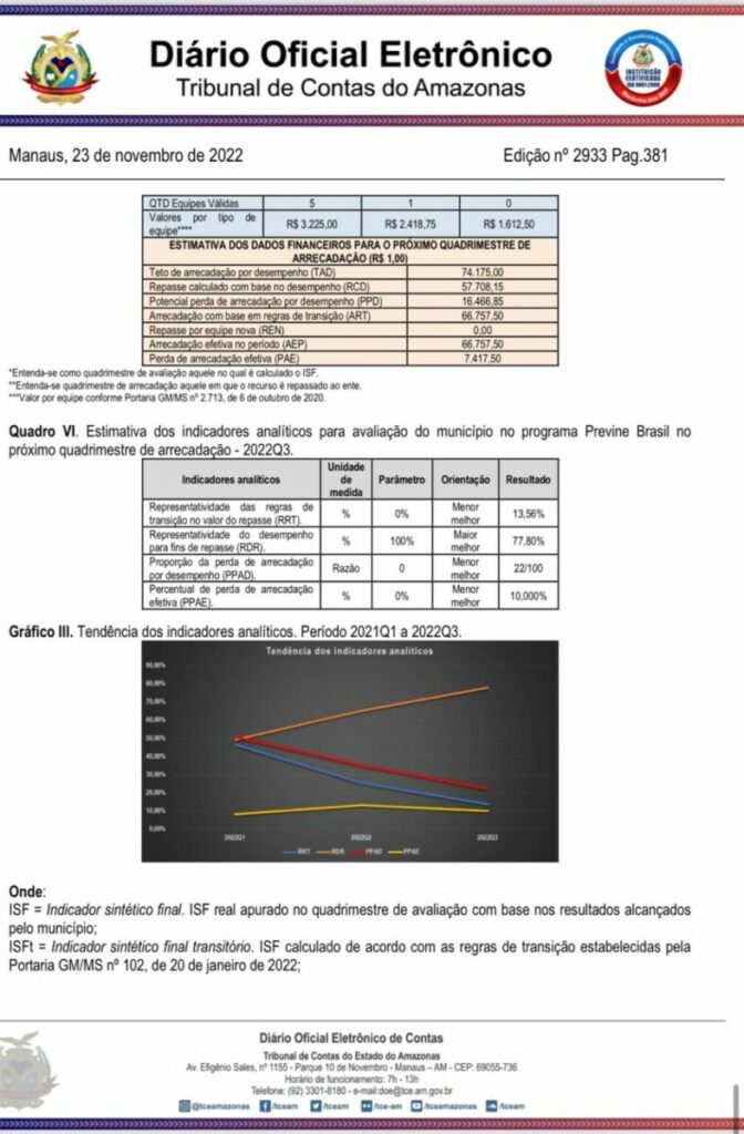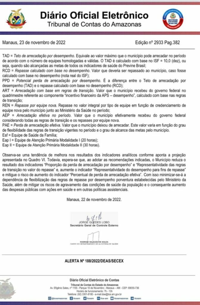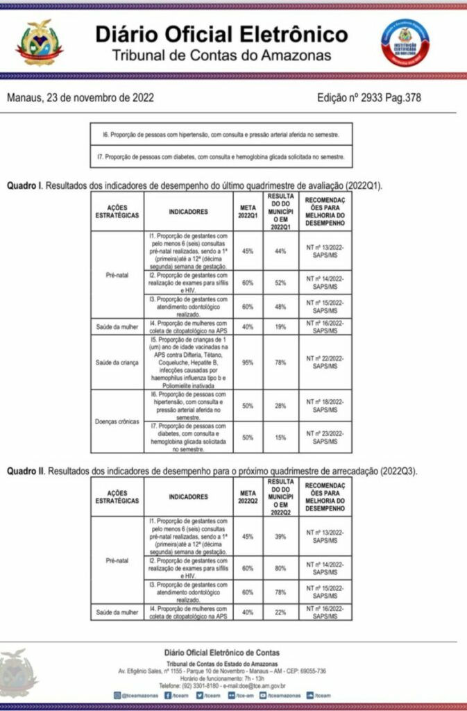 A gestão do prefeito Jair Souto em Manaquiri, ganhou destaque negativo no relatório e deve se reorganizar no setor de saude primária, que nomeou sua irmã Maira Souto para liderar a Secretaria Municipal de Saúde de Manaquiri.