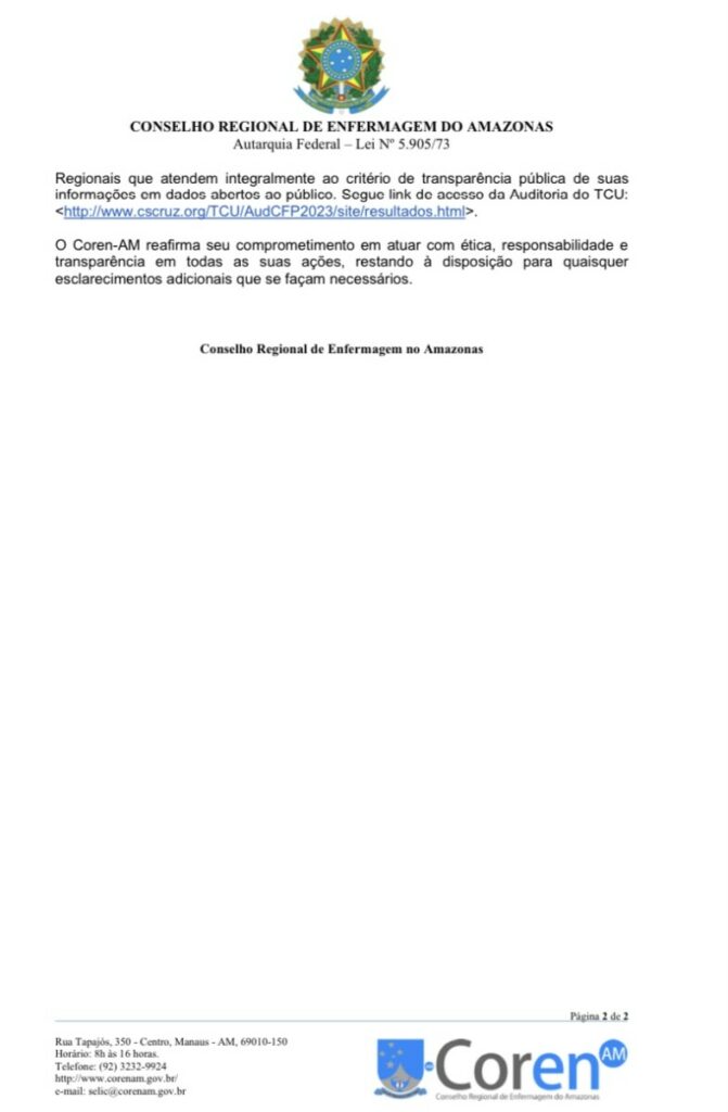 A disputa em torno das finanças do Coren-AM promete se intensificar, à medida que os detalhes e as alegações são examinados em maior profundidade. A comunidade de enfermeiros e a população em geral observarão atentamente os desenvolvimentos dessa controvérsia, que tem implicações significativas para a instituição e seu papel fundamental na área da enfermagem no Amazonas.