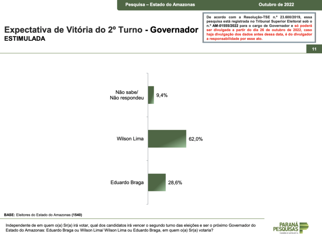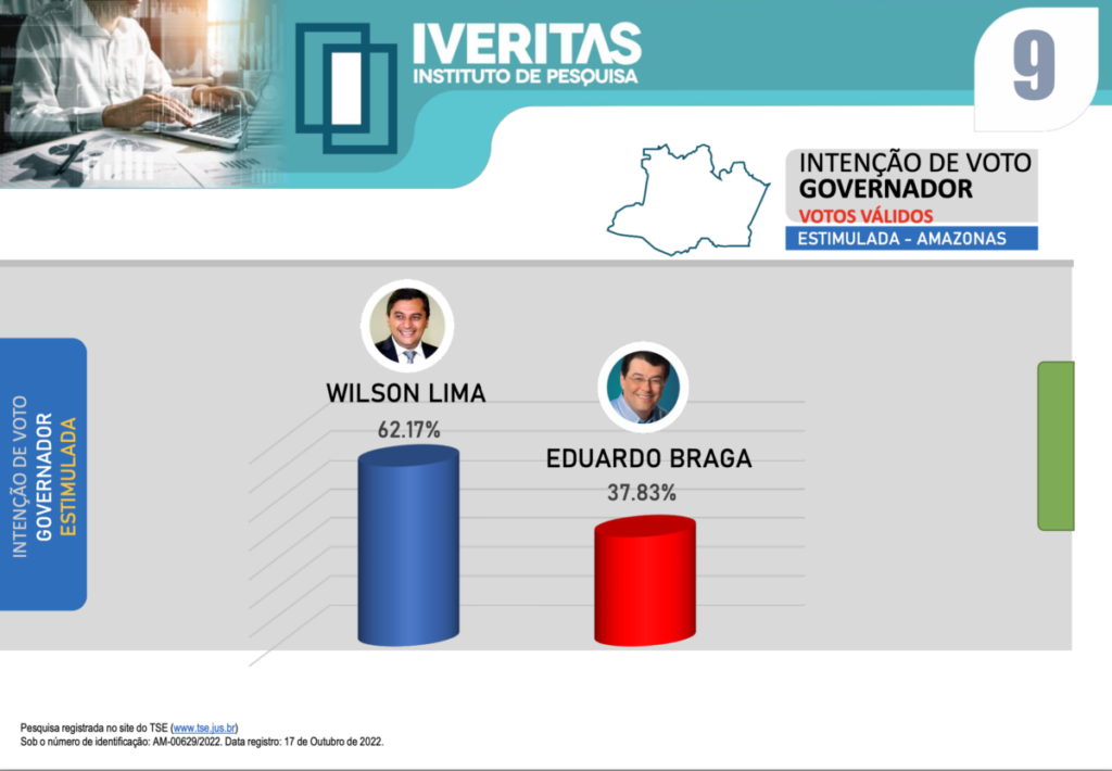 Na pesquisa divulgada nesta quarta-feira (26) pela Paraná Pesquisas, Wilson Lima apresentou larga vantagem sobre o segundo colocado Eduardo Braga, que não teve crescimento.