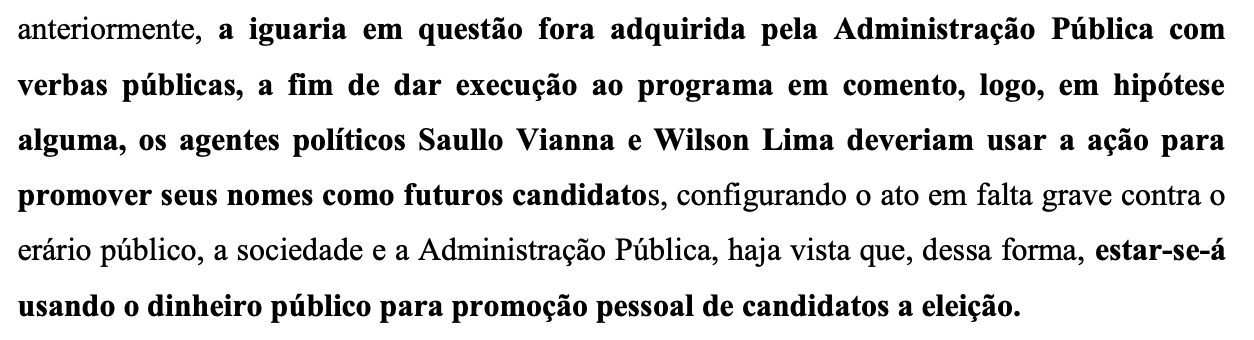 O parlamentar pede para que o caso seja investigado e que o governador Wilson Lima e o deputado estadual Saullo Viana sejam punidos por, pelo que somente ele acredita, ser uma suposta propaganda eleitoral antecipada. No fim de tudo, quem sai perdendo é a própria população.