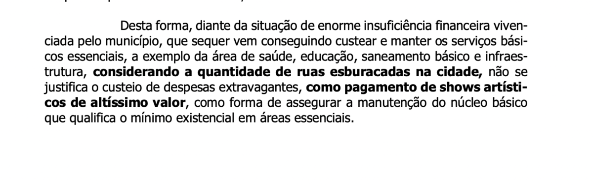 A decisão foi tomada pelo promotor de Justiça Kleyson Nascimento Barroso, que requereu a nulidade da contratação dos shows em sede de tutela de urgência. O MP-AM argumentou que a população local enfrenta inúmeros problemas relacionados a direitos sociais essenciais não atendidos, como infraestrutura, saúde e segurança pública, e que o uso de recursos públicos para pagar cachês de artistas seria inadequado diante dessa situação.
