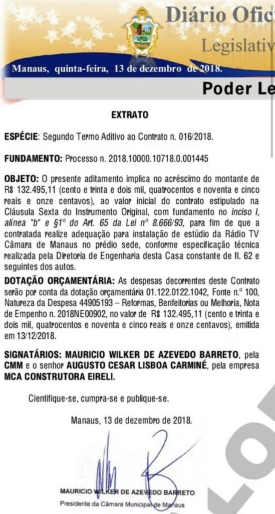 Coincidência ou não, nessa mesma época, o deputado Wilker Barreto ocupava a presidência da Câmara de Manaus. Na realidade, a relação da CMM com a família Batará, que controla jornal, rádio, televisão, entre outros, não é recente. Em agosto de 2015, por exemplo, Wilker Barreto contemplou a empresa Rede Floresta Viva de Comunicação Ltda com um modesto contrato de R$ 3 milhões e 700 mil válido por um ano.