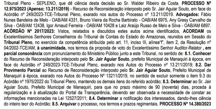 Manaus – O Tribunal de Contas do Estado do Amazonas (TCE-AM) emitiu um prazo de 90 dias para que o prefeito de Manaquiri, Jair Souto (MDB), regularize o Portal da Transparência do município. Essa medida visa assegurar que as informações de interesse público estejam acessíveis ao cidadão, contribuindo para a transparência e accountability da administração municipal.