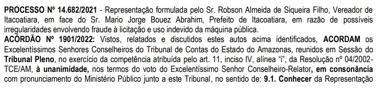 Amazonas – O Tribunal de Contas do Amazonas (TCE-AM) condenou o prefeito de Itacoatiara, Mario Abrahim a pagar uma multa de quase R$ 14 mil pela prática de nepotismo na administração municipal. A condenação ocorre após o vereador Robison Almeida Filho denunciar a nomeação da cunhada de Mario Abrahim ao cargo de chefe de gabinete da prefeitura para o Ministério Público do Amazonas (MP-AM).
