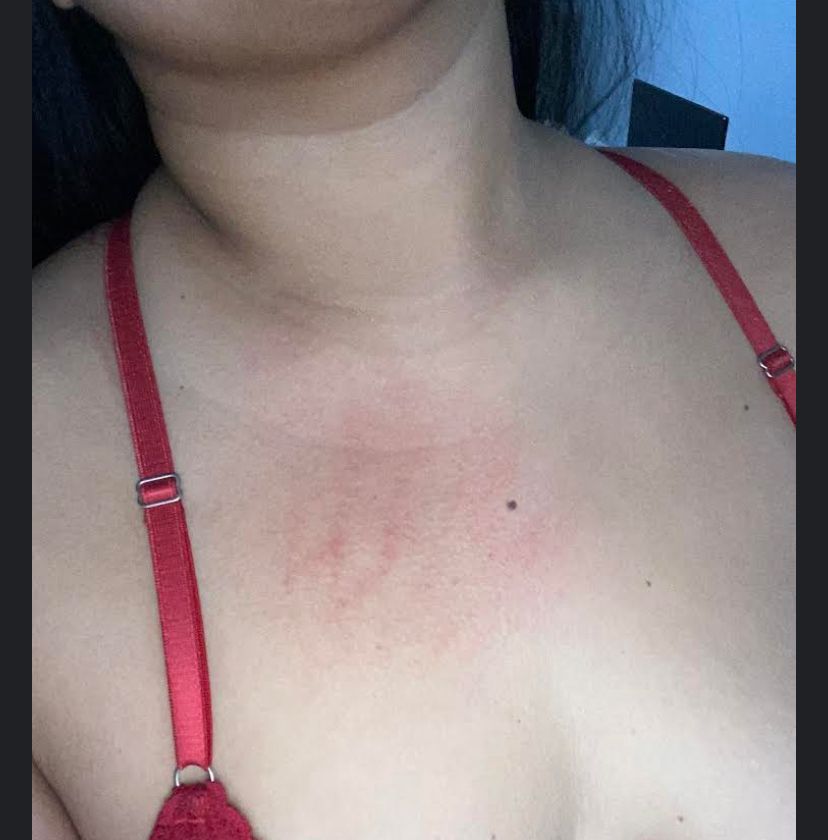 Em imagens, é possível ver as escoriações causadas pela agressão cometida contra a vítima.