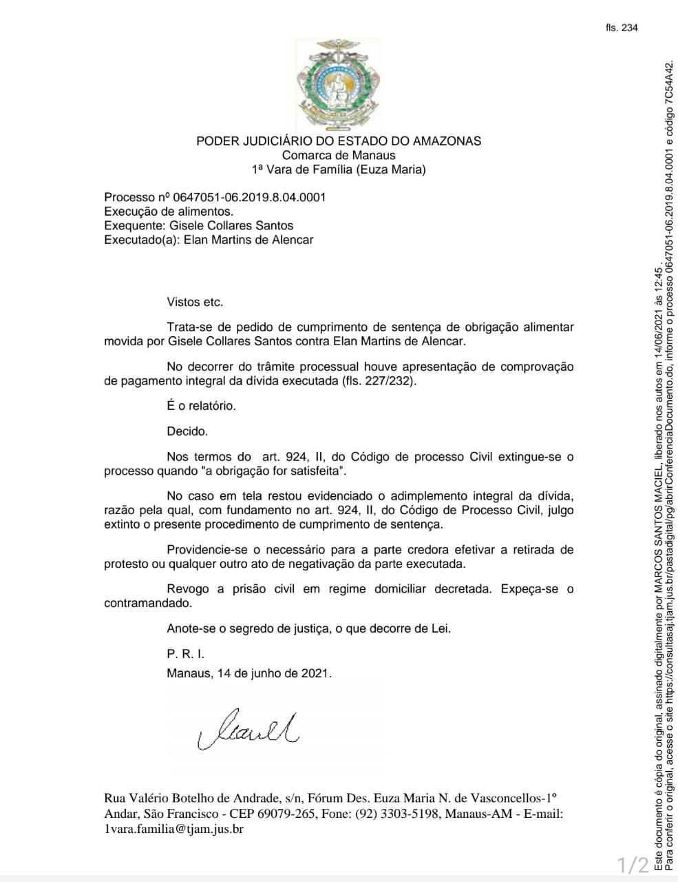 Manaus (AM) – Na manhã desta segunda-feira (14), a Justiça do Estado do Amazonas reconheceu os pagamentos da pensão alimentícia que o vereador Elan Alencar efetuou para a sua filha menor de idade, que reside no Rio de Janeiro, e revogou a prisão domiciliar a qual o vereador se encontrava desde a última sexta-feira (11).