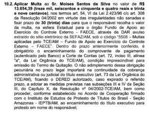 Além disso, foi aplicada uma multa no valor de R$ 13.654,39 a Moises Santos da Silva, com um prazo de 30 dias para efetuar o pagamento.