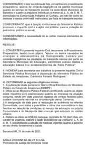 A citação contida nos documentos do inquérito é uma condenação clara da prefeitura: “apurar os danos causados às crianças e adolescentes da Comunidade Cumaru por omissão e negligência na prestação de transporte escolar por parte da secretaria municipal de educação, permitindo acesso destas à educação básica nos estabelecimentos da rede pública”.