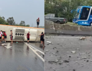Brasil - Um ônibus que transportava torcedores do Flamengo, integrantes das organizadas Urubuzada e Nação 12, tombou na Rodovia Presidente…