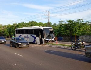 Manaus - Um ônibus de transporte executivo saiu da pista e derrubou um poste de iluminação após invadir o canteiro…