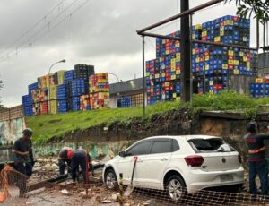Temporal provoca desabamento de muro da Ambev e atinge automóveis em Manaus; veja vídeos