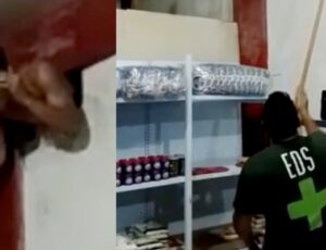 Comerciante ‘senta a vara’ em ‘Lalau’ que ficou preso em buraco de ar-condicionado; veja vídeo
