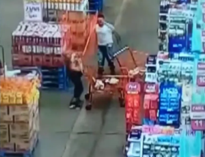 Homem joga carrinho de compras na cabeça de mulher em supermercado; veja o video