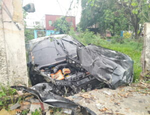 Chuva e destruição: carro tem perda total em acidente grave no Lírio do Vale