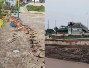 Chuva intensa agrava danos e expõe risco de deslizamento na orla de Itacoatiara; veja vídeo
