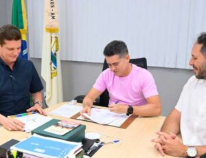 Manaus - O prefeito de Manaus, David Almeida, assinou, nesta quinta-feira, 12/3, no Centro de Cooperação da Cidade (CCC), o…