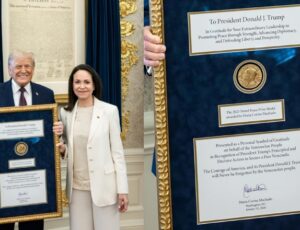 Mundo — Em um gesto simbólico que repercutiu no mundo todo, a líder da oposição venezuelana e vencedora do Prêmio…
