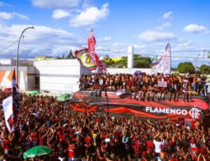 Flamengo embarca para final da Libertadores sob festa e tumulto da torcida