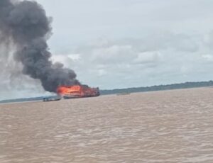 Amazonas Uma embarcação pegou fogo na tarde desta quinta-feira (29), no trecho do rio entre os municípios de Anamã e…