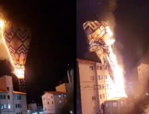 Brasil - Um balão de grandes dimensões caiu sobre um prédio num conjunto habitacional de Arujá (SP), na noite de…