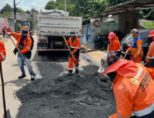 Ruas do bairro Tarumã recebem melhoria na mobilidade com serviços de recuperação asfáltica da prefeitura