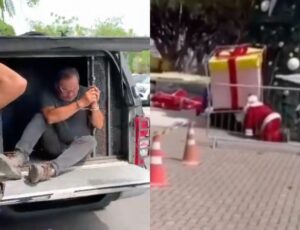 Manaus – O operador de guindaste Antônio Benjamin de Lima Cunha, que atuava fantasiado de Papai Noel durante a montagem…