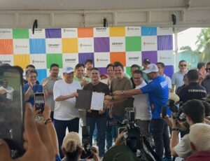 Senador Eduardo Braga e Prefeito David Almeida assinam ordem de serviço de recuperação do Ramal da Fazenda da Esperança